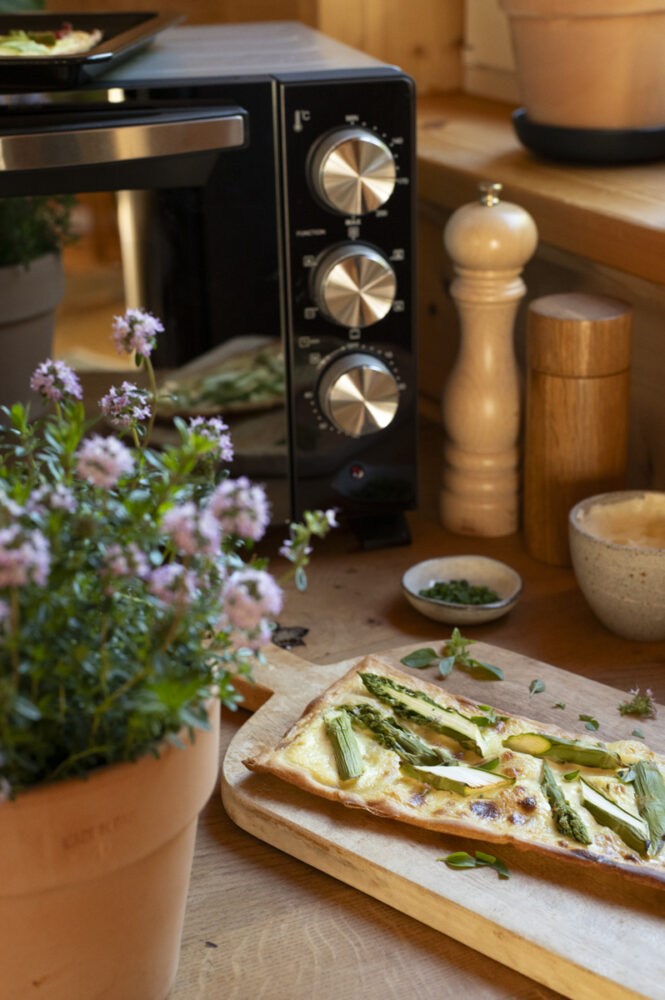 Knuspriger Boden, eine cremige Basis mit einem Hauch Senf und frischer, regionaler Spargel: Dieses Rezept verbindet Frühlingsküche mit unkompliziertem Genuss. Perfekt für spontane Gäste, als Snack beim Zusammensitzen im Garten oder einfach, wenn du dir selbst etwas Gutes tun möchtest.